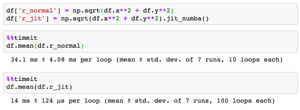 如果表达式在运行时真的很复杂怎么办?通过使用Pythran或Numba,我们可以使用手动实时(JIT)编译来优化计算。