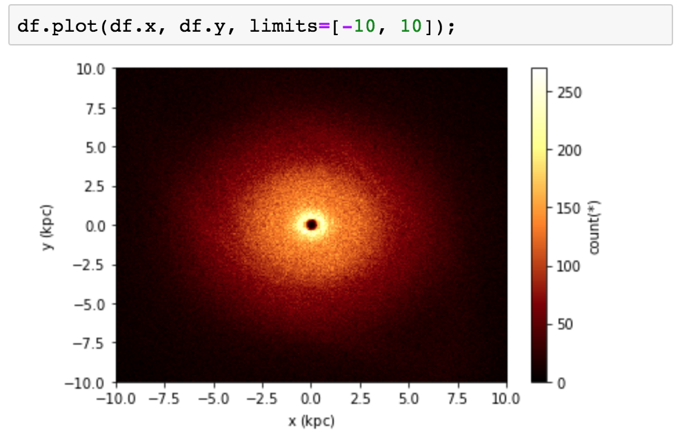 使用直方图、密度图和三维体绘制完成可视化,从而可以交互式探索大数据。Vaex 使用内存映射、零内存复制策略获得最佳性能(不浪费内存)。