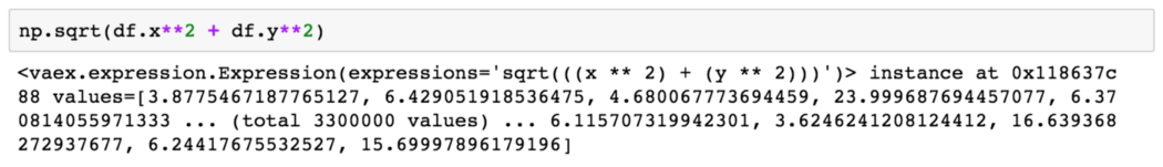 使用表达式系统,vaex仅在需要时执行计算。同样,数据也不必是本地的:表达式可以通过发送的方式,统计信息可以远程计算,这是vaex-server程序包提供的。