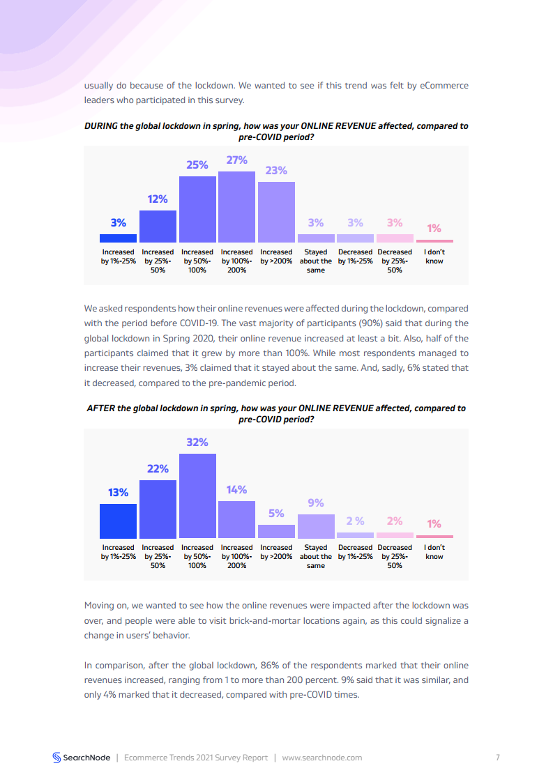 在春季全球封锁结束后,可以看到一个非常相似的趋势:与大流行前相比,40%的受访者看到了增长,只有14%的人看到了在线利润率的下降。