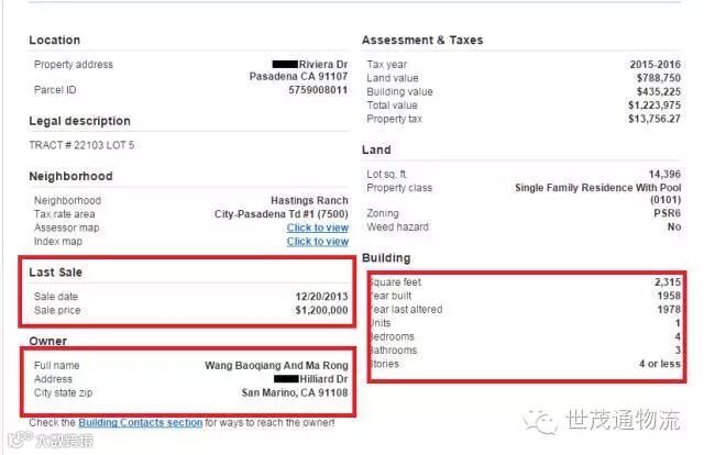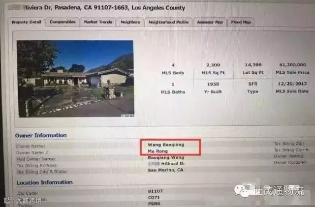 面积大概在2315尺,建于1958年。房子是2013年12月20成交,当时成交价格是120万美元,房产名字是Wang baoqiang 和Ma Rong联名登记的。