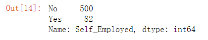 按照之前提到的方法,我们可以通过以下代码打印出频率表来查看Self_Employed含有的缺失值: