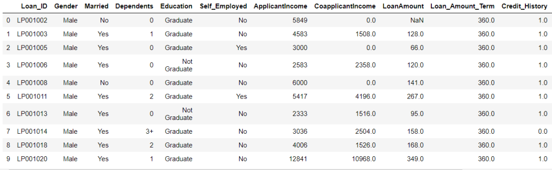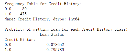 对于非数字值(例如Property_Area,Credit_History字段),我们可以查看频率分布来判断它们是否有意义。可以使用以下命令打印频率表: