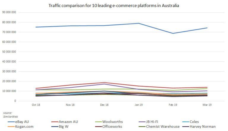 (图:2019年澳大利亚Top10电商平台的流量比较)