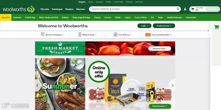 网站:woolworths.com.au 估算每月流量:1270万次访问