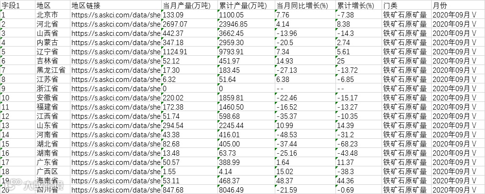 2、时间跨度:2010-2020 年(门类不同时间范围有差异)