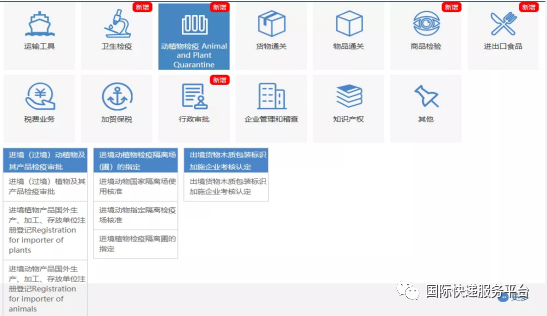 3、申请办理检疫审批手续在“互联网+海关”登录,并在动植物检疫模块下选择相应的类别。