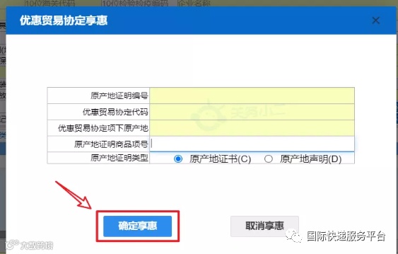 (3)根据报关单享惠商品和原产地证明商品项号对应关系,填写“原产地证明商品项号”,点击“确定享惠”按钮