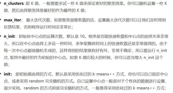 KMeans(n_clusters=8, init='k-means++', n_init=10, max_iter=300, tol=0.0001, precompute_distances='auto', verbose=0, random_state=None, copy_x=True, n_jobs=1, algorithm='auto')
