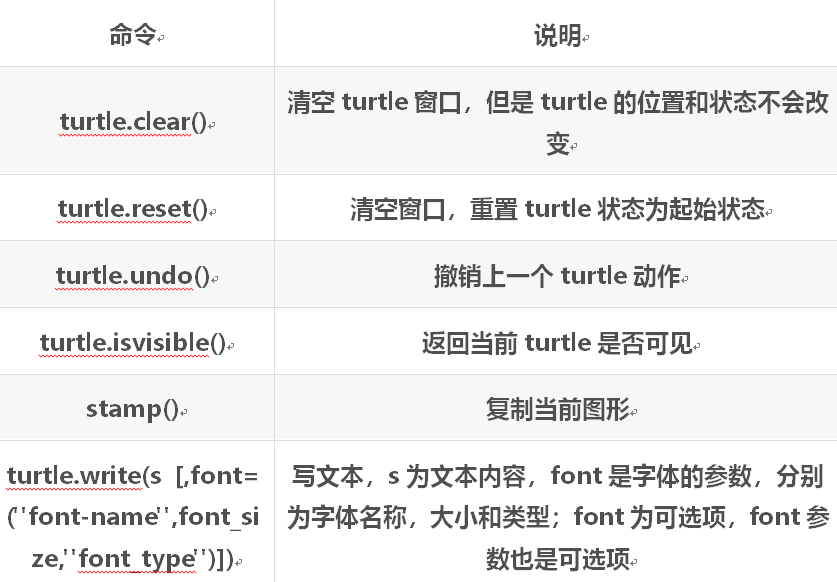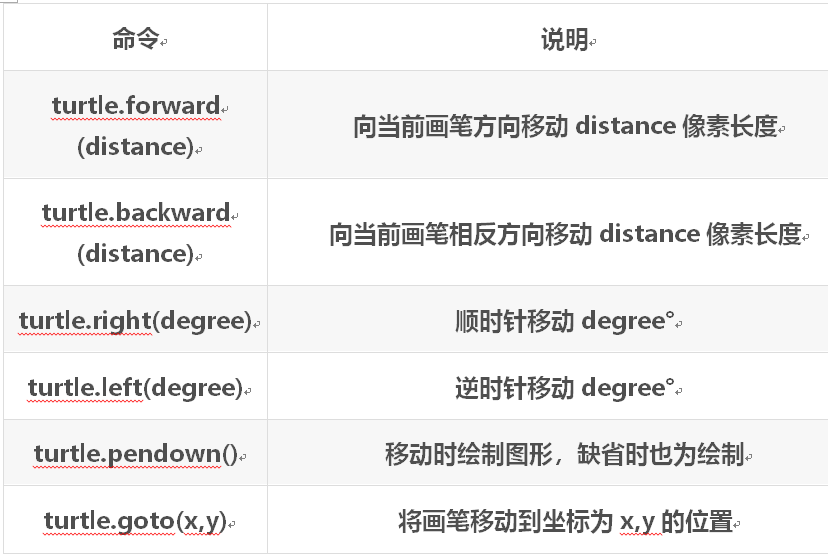 操纵海龟绘图有着许多的命令,这些命令可以划分为3种:一种为运动命令,一种为画笔控制命令,还有一种是全局控制命令。