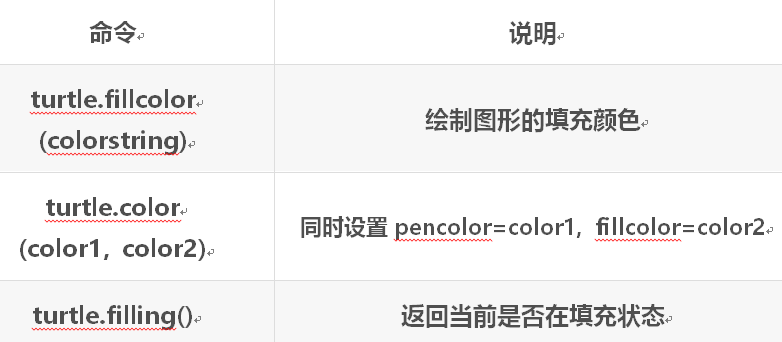 2) turtle.pencolor():没有参数传入,返回当前画笔颜色, 传入参数设置画笔颜色,可以是字符串如"green", "red",也 可以是RGB 3元组。