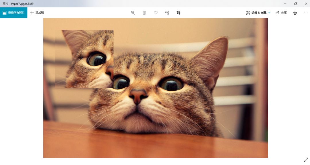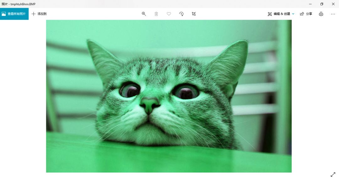 上面的代码将小猫图像的颜色通道合并,效果如下图: