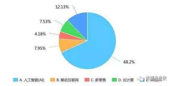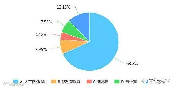 当被问到心目中最具备发展前景的行业时,89.12% 被访者都认为时下最具备发展前景的行业是互联网科技;在该行业中最具发展潜力领域的问题上,68.2%的被访者都选择了 AI;而在是否选择 AI 领域就业的问题上,55.23% 被访者的选择为“是”。