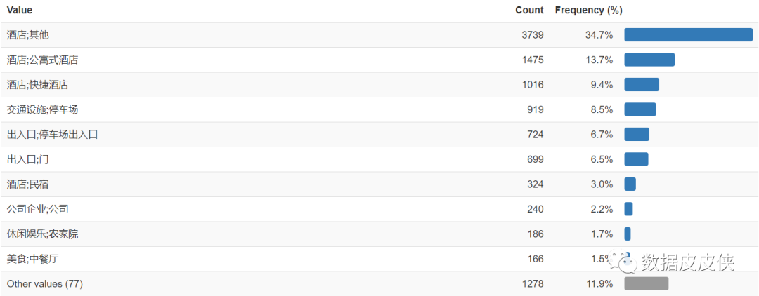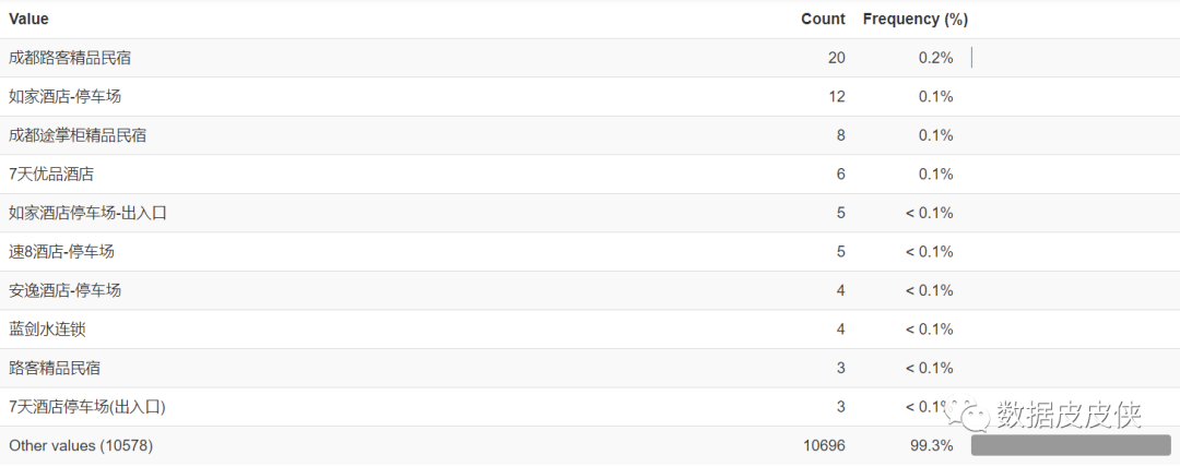 通过对原始数据进行初步的清洗,选取酒店名称、酒店所在区域、所属类型等进行初步的数据分析。