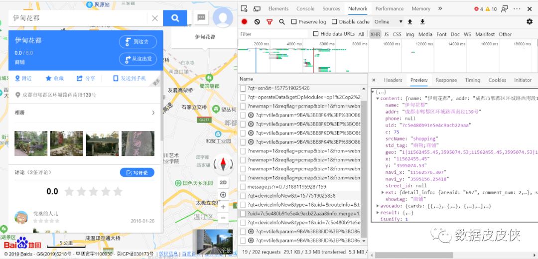 主要是通过百度地图官方提供的API接口进行访问(在官网上注册开发者获取ak密钥),另外辅助以百度地图网页端的详细信息数据爬取完成对成都地区的数据POI(Place Of Interest)的获取。
