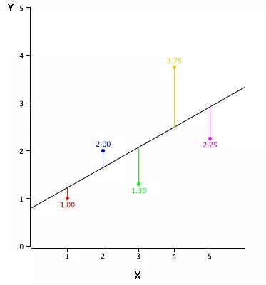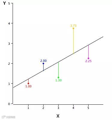 这个问题可以使用最小二乘法轻松地完成。最小二乘法也是用于拟合回归线最常用的方法。对于观测数据,它通过最小化每个数据点到线的垂直偏差平方和来计算最佳拟合线。因为在相加时,偏差先平方,所以正值和负值没有抵消。