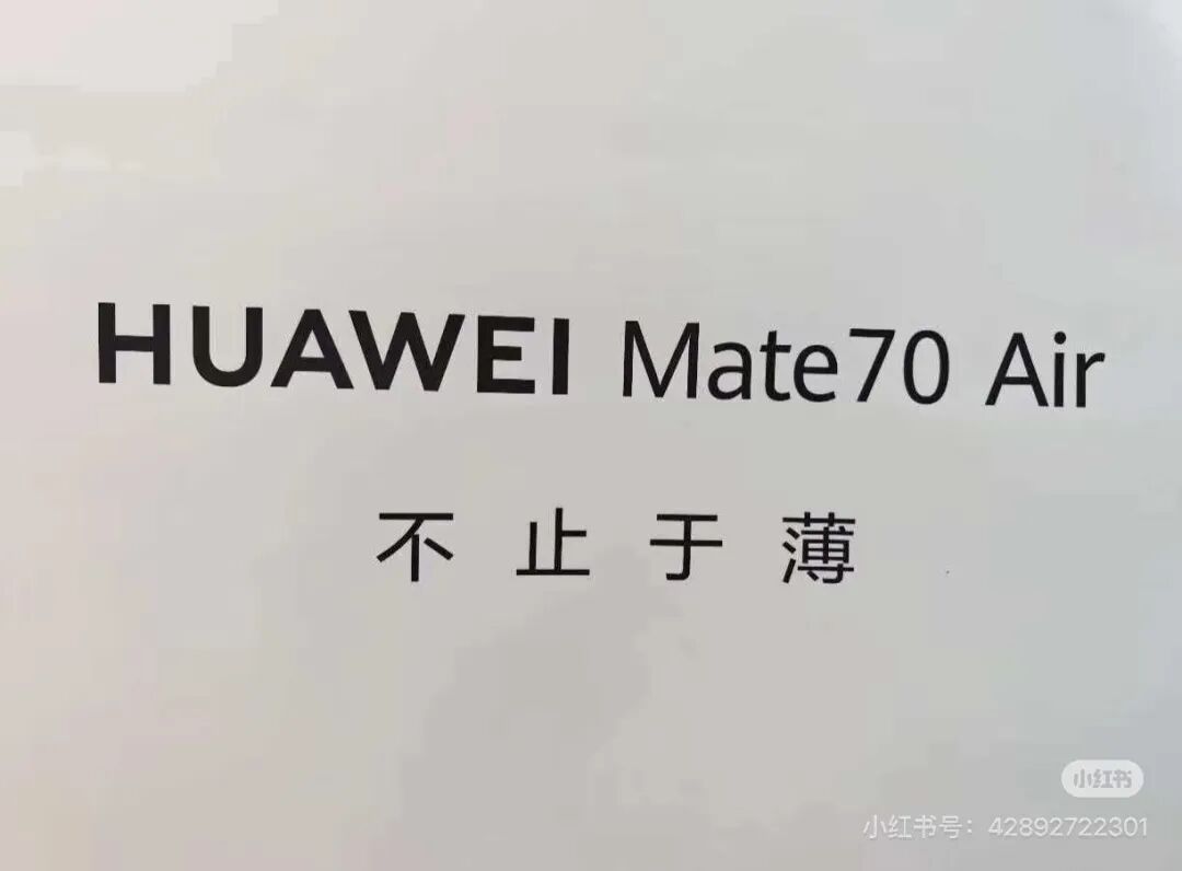 最后来看看华为这边的新机。按照更新节奏,华为下半年的重磅旗舰Mate 80系列预计11月发布,但在Mate 80系列发布前似乎还有一款Mate 70 Air超薄新机即将登场,目前线下海报已经曝光。