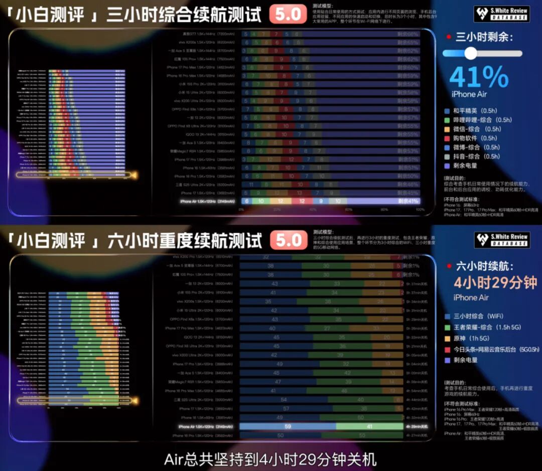 【新机】iPhoneAir续航充电表现如何?小白测评数据库5.0实测