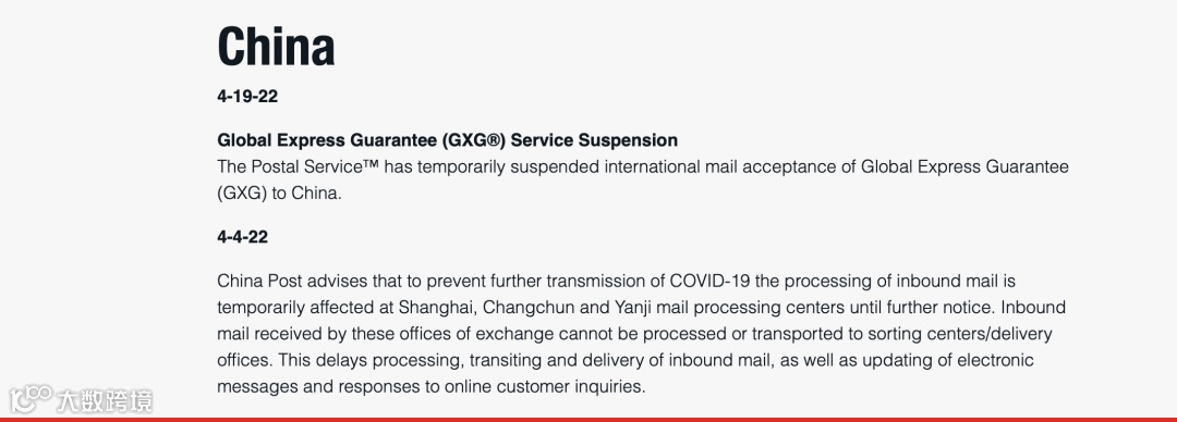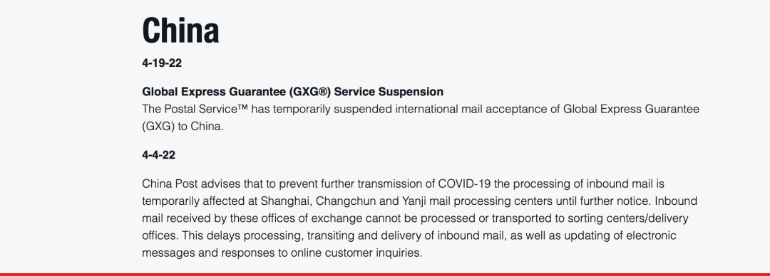 美国邮政局官网4月19日发布的通知显示,已暂停接受寄往中国的GXG国际邮件。