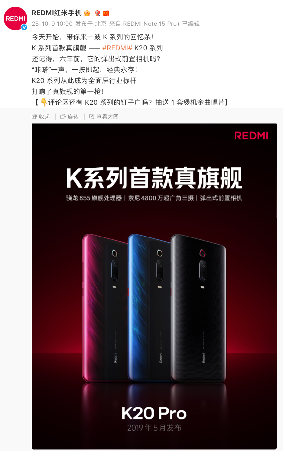 REDMI K20系列,并询问是否还有K20系列的钉子户~