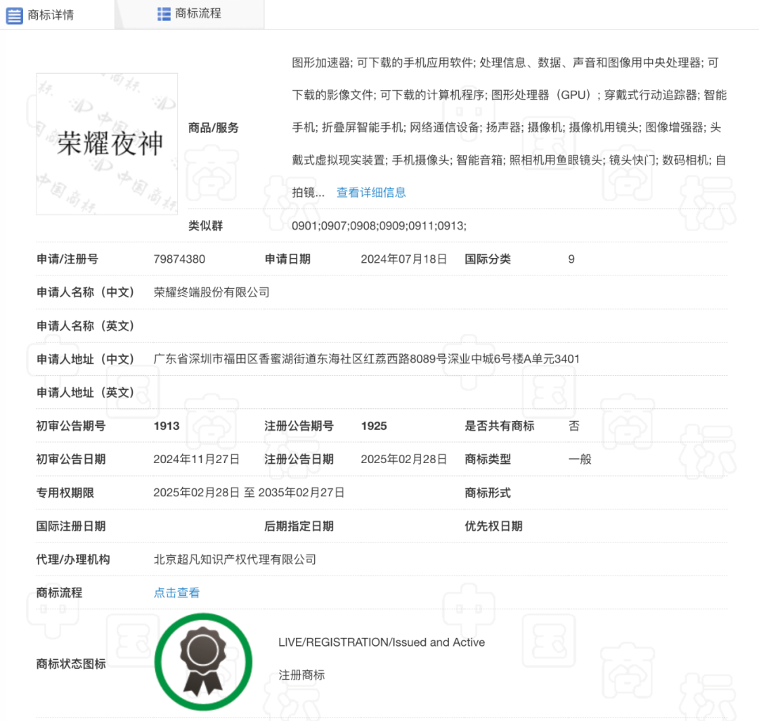 说到夜神,荣耀之前还申请了“荣耀夜神”的商标,大家看好荣耀这代的影像表现吗?