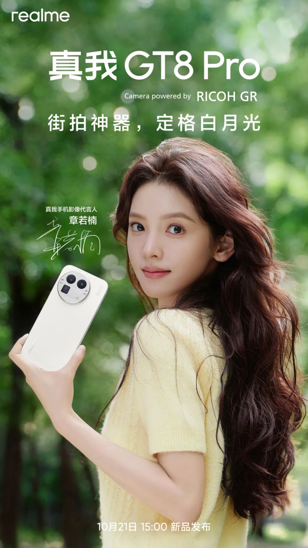 如上图所见,官方宣布演员章若楠担任真我手机影像代言人。