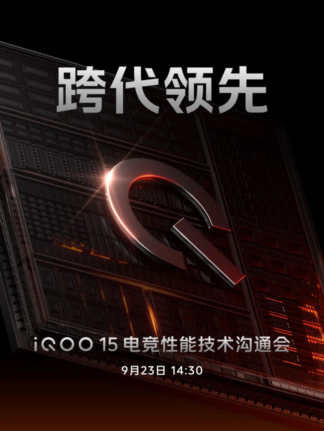 另外官方还预热将于9月23日14:30举行iQOO 15电竞性能技术沟通会。按照此前爆料,iQOO 15将采用2K三星珠峰直屏,搭载骁龙8 Elite Gen5,似乎还有颗50MP 3X中底潜望长焦,配备有3D超声波指纹、自研独显芯片、百瓦闪充等等。