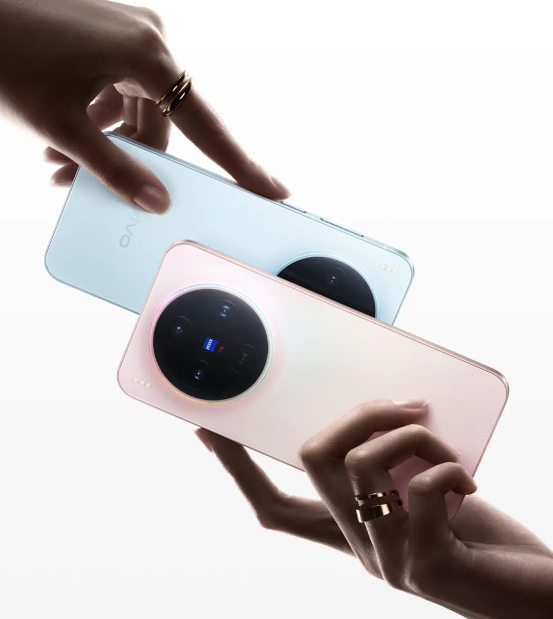 具体vivo X300标准版主打色应该是粉色和蓝色,蔡司蓝色标识位于圆形模组正中间,粉色感觉有点泛彩色,个人感觉和OPPO Find X8 Ultra粉色有一点点像。