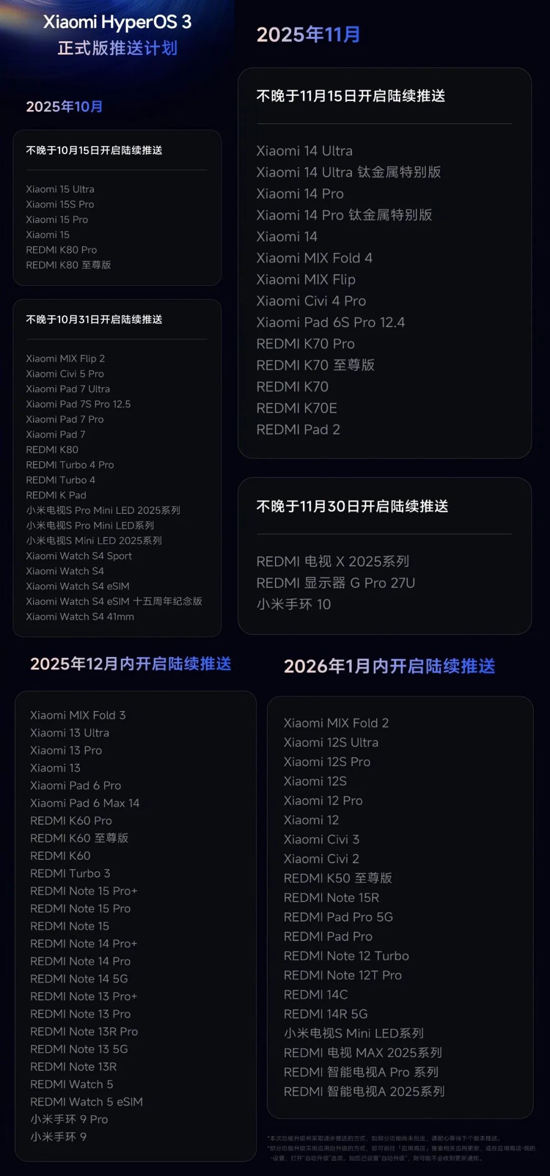 完整更新计划参考上图,大家可以看看自己的机型大概在第几批~