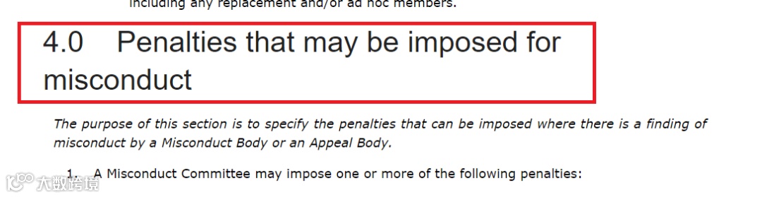 第(1)(a)款(针对一般不端行为或学术不端行为)或第(1)(b)款(针对学术不端行为)所述的任何处罚;
