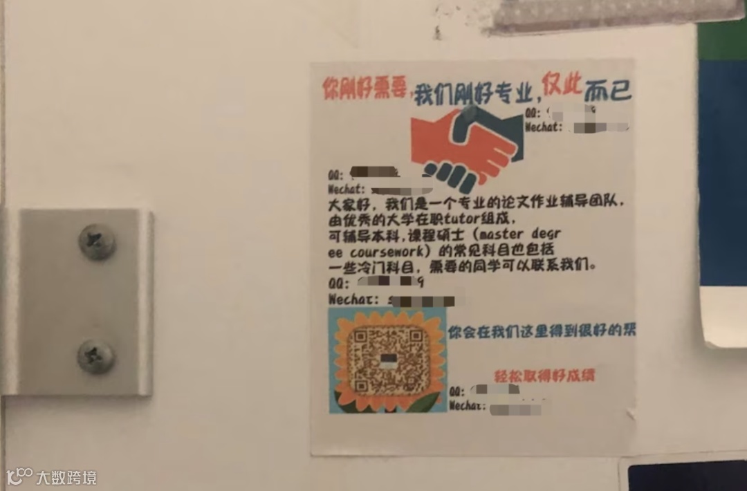据悉,一些代写机构会通过散发招聘广告招募留学生做写手,并设法渗透到大学课程之中,“他们很可能从迎新周就开始招人——不幸的是,一些学生会以为这是一份正当工作。”