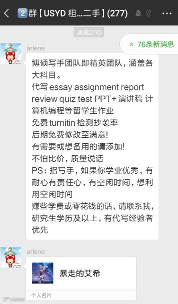 最近,来自中国的代写团队再度瞄准了澳洲高校,据悉,几乎每一个UNSW(新南威尔士大学)的学生都收到了一封用中文写成的代写广告。