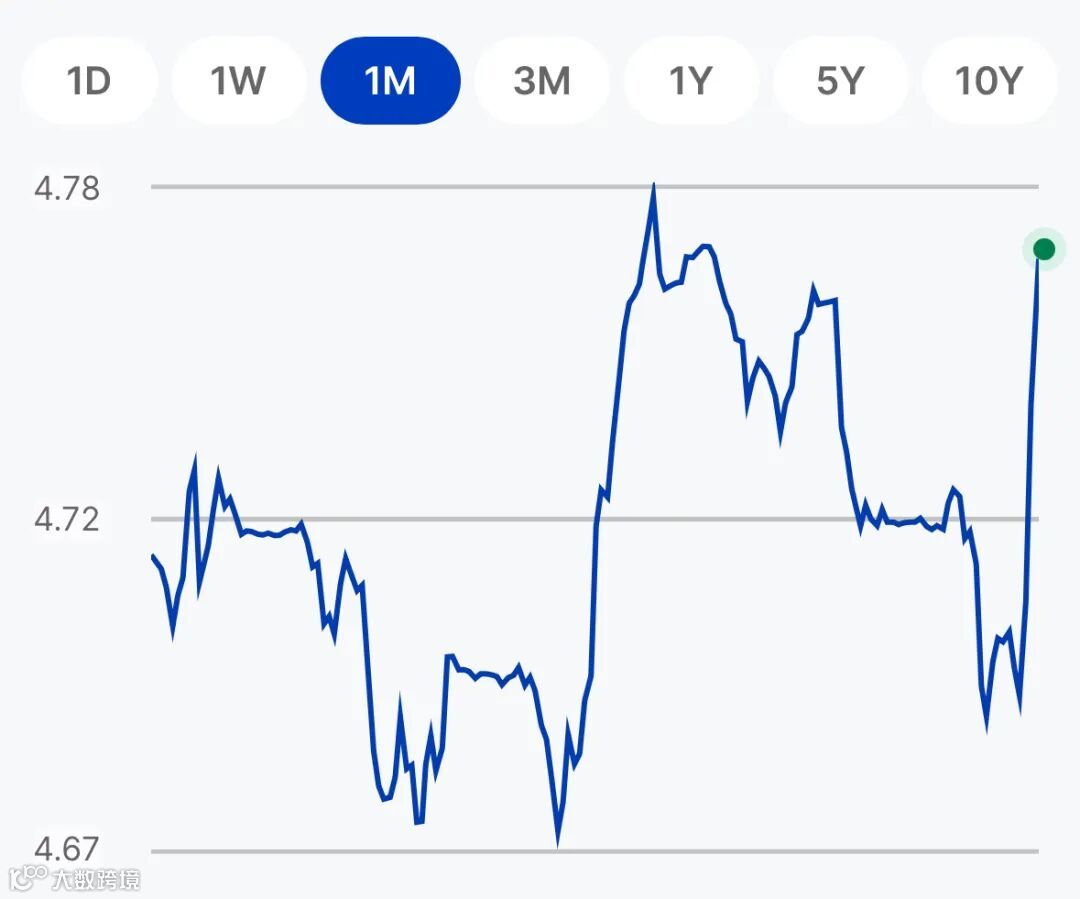 12小时内,澳币兑人民币从最低1:4.689上涨到1:4.768,涨幅达1.28%。