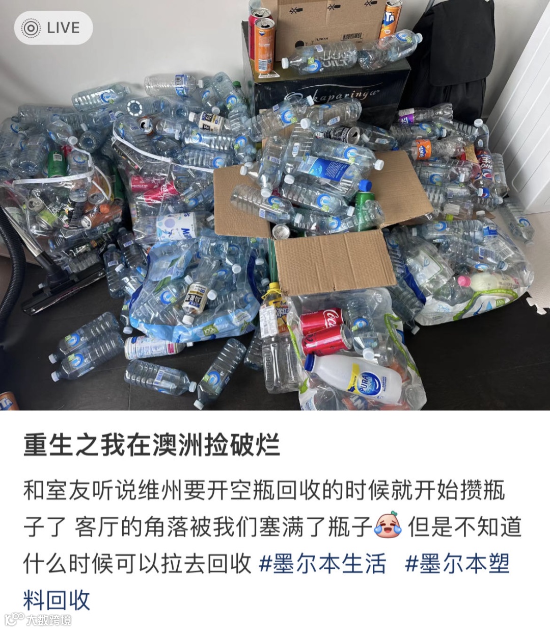 有华人为了验证一下捡瓶子到底能挣多少钱,