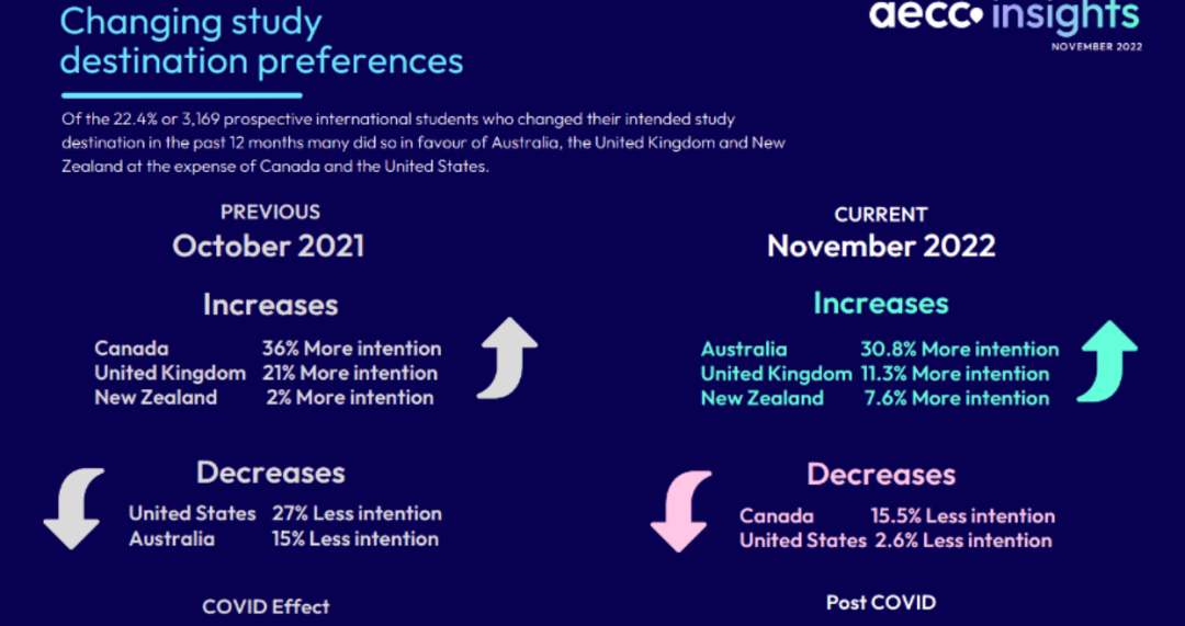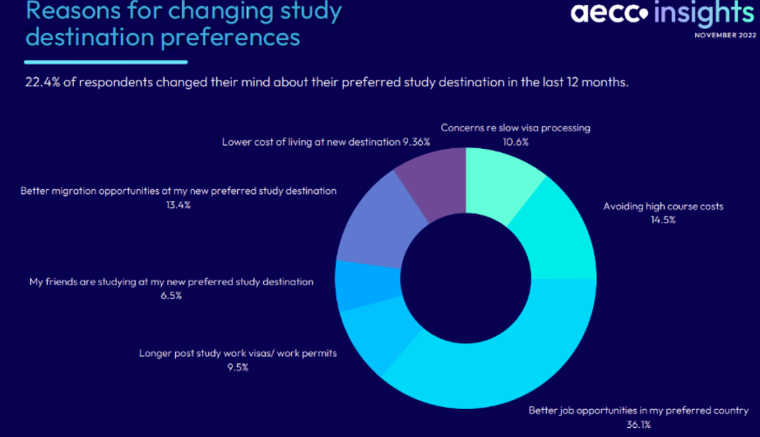 此外,AECC的调查还研究了学生改变留学目的地的原因,