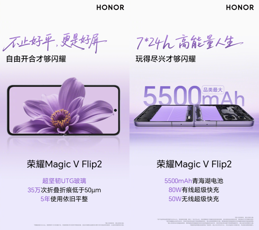 据了解,荣耀Magic V Flip2现已上架开启预约,电商界面显示这次提供12+256GB、12+512GB、12GB+1TB三个存储规格, 钛空灰、月影白、晨曦紫3个颜色,另外有一款「织梦蓝」高定版,携手Professor Jimmy Choo周仰杰博士打造,后盖为蓝白色渐变Blingbling效果。细节上可以看到闪光灯依旧位于机身下半部分,和后置镜头独立分布。