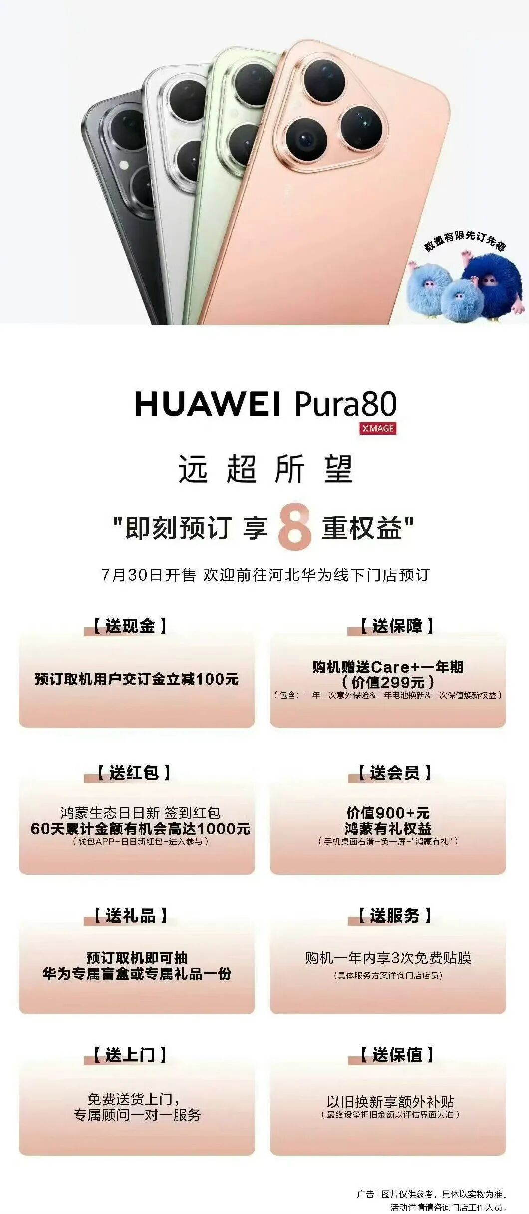 如上图所见,网传海报显示Pura 80标准版将在7月30日开售,目前线下门店可以预订。