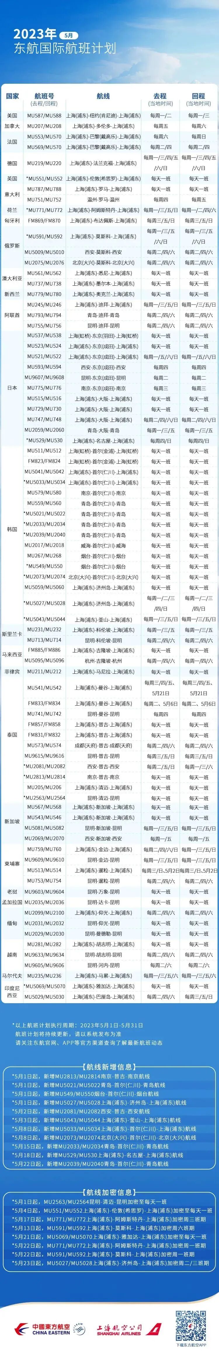 *以上航班计划可能根据政策有所变化,请关注东航官网、APP等官方渠道查询了解最新航班动态。