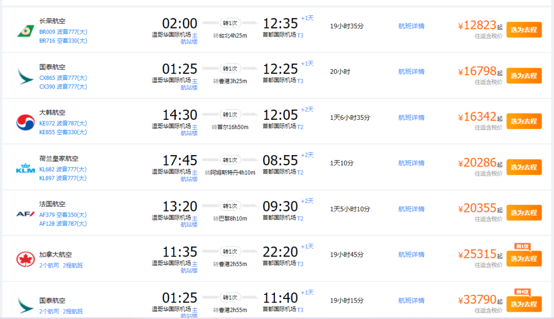 从6月1日开始,温哥华回国的航班就增至1天1趟了,一直到10月2日,正好覆盖了暑假高峰期,加拿大飞回去的航班也将增加至每周13周。