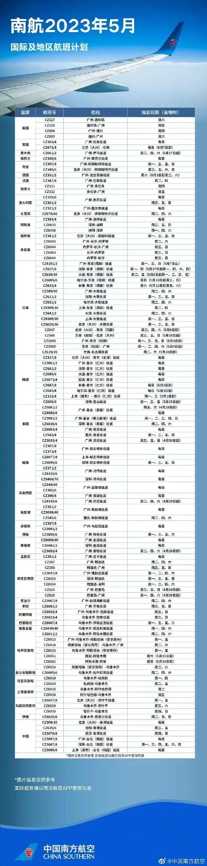 5月国际航班信息来了!