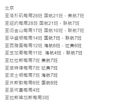 疫情前仅仅飞北京的直航就有144班