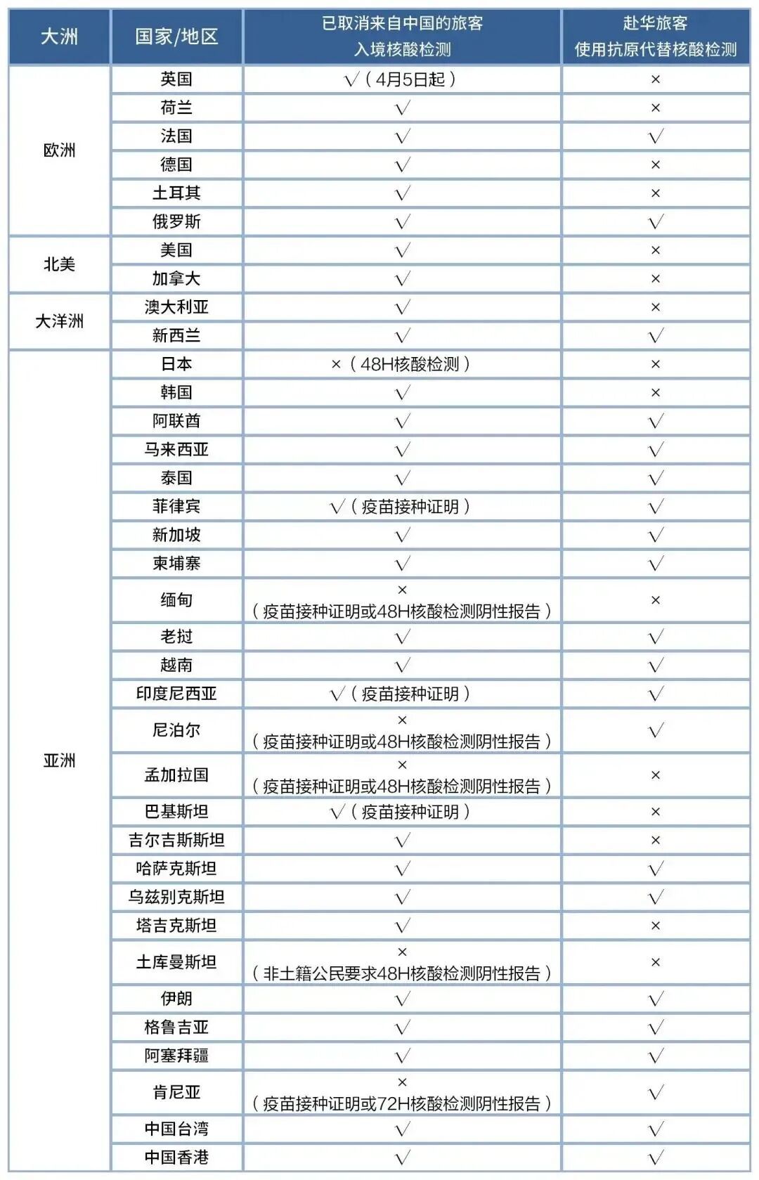 南航主要通航国家及地区的入境及赴华核酸政策,汇总如下: