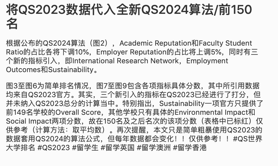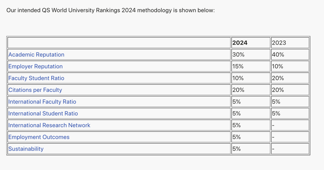 其实,三个新引入的指标在QS2023已经进行了打分,但并未纳入QS2023总分的计算当中。