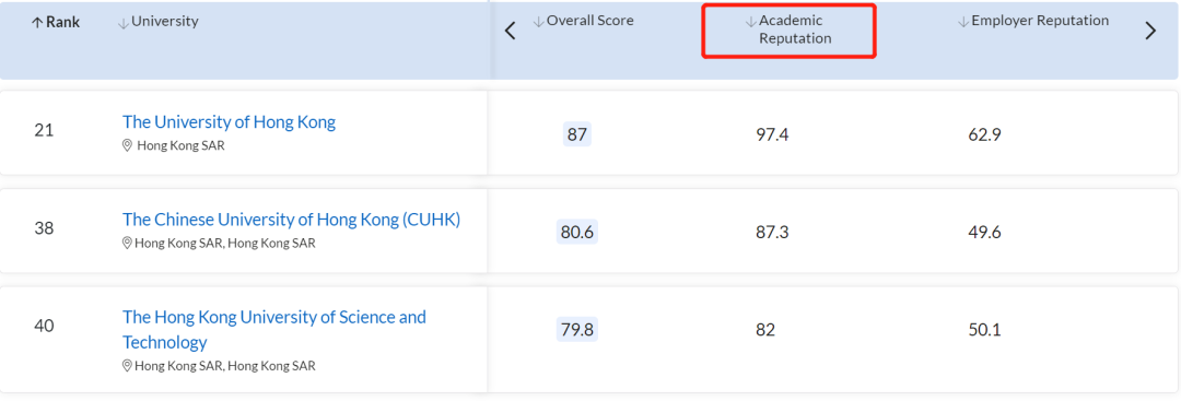 因为港大、中大、科大、理大以及城大在学术声誉的表现非常出色,但是今年这个指标占比下降,所以它们可能都会受到影响。