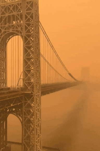 从昨天开始,烟雾笼罩整个纽约,网友拍摄的画面中甚至看不到对面的帝国大厦: