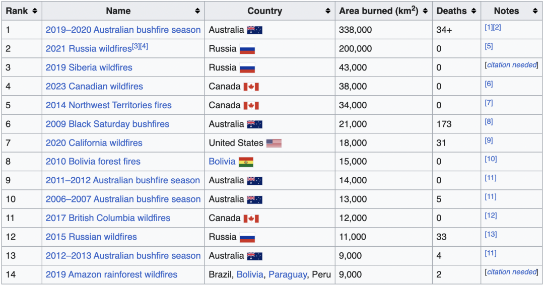 已经排到21世纪世界山火总榜第四严重