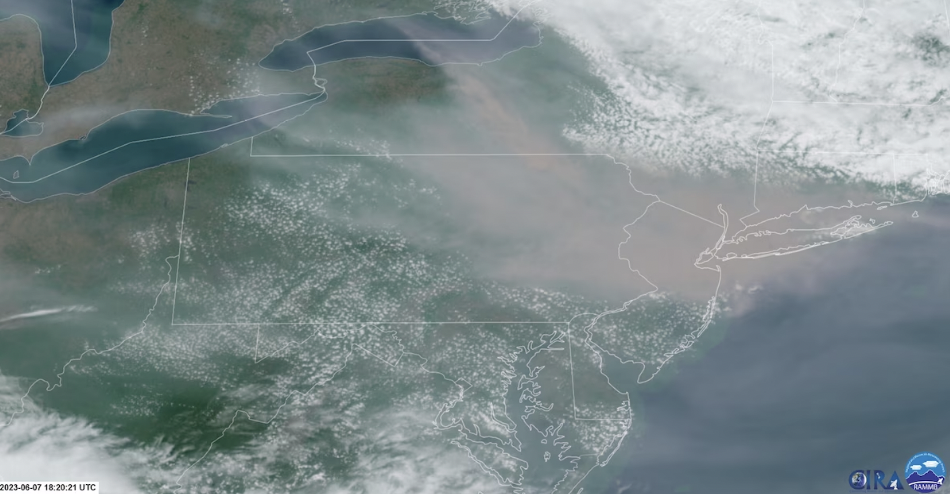 截至当地时间6月8日,加拿大魁北克/Nova Scotia的庞大规模山火所造成的烟雾继续向南飘移,使加拿大部分城市和美国东北部大城市笼罩在黄褐色雾霾中。