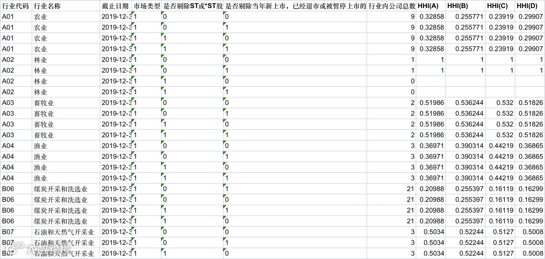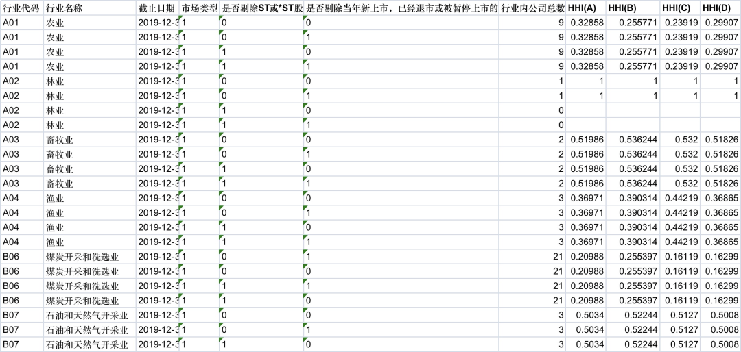 HHI赫芬达尔指数行业市场竞争度数据整理(1990-2019年数据)