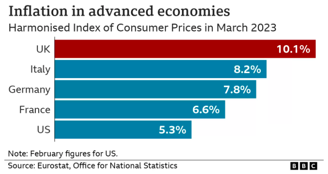 英国目前的通货膨胀率仍然高于其他包括美国、德国、法国和意大利在内的西方国家!!