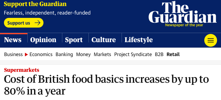 英国最大的消费者评测机构Which?发现:3月份超市食品和饮料的通货膨胀率持续上升,